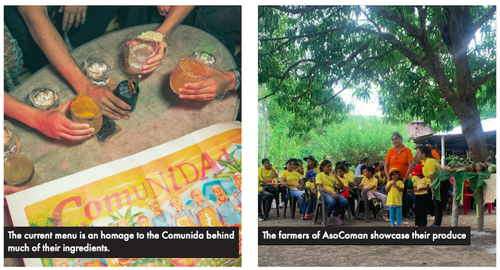 The ambition of the next menu from Alquímico goes even further. The edition for the first floor celebrates the Comunidad community project, and will fund an “AsocOman’s processing building” and a “school for the children” of the farmers, Trinh says. Profits from the second-floor menu will fund “an academy for bartenders (mainly from humble neighbourhoods of Cartagena)” and a “music foundation” for disadvantaged teenagers.